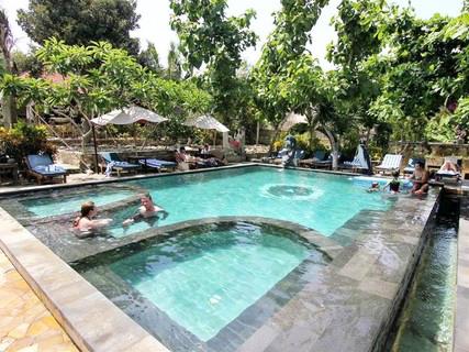 The Villas lay out has made it possible for 9 units Villas Balinese style in an exclusive sculptured environment with six units One bedroom villas, two units 2 bedrooms Villas, Tanis Suite. All Villas with air conditioning. Also available two story of room building with eight rooms, some with Air-conditioning and fan, mini Bar and bathroom with bathtube.